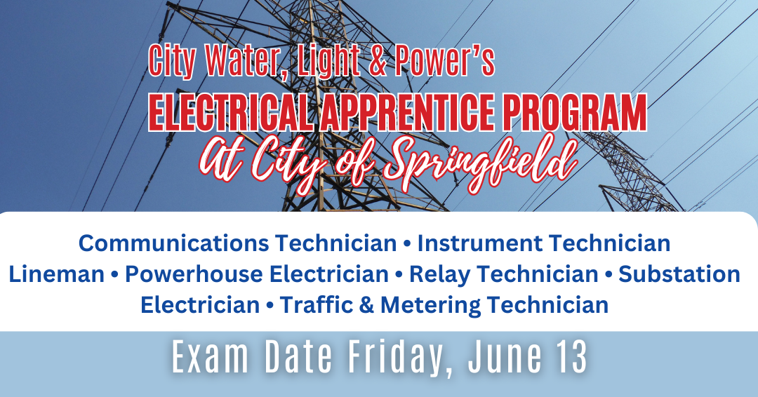 The next exam date to qualify for the City’s Electrical Apprenticeship program is Friday, June 13. This test qualifies for entry as an apprentice to get on-the-job training and coursework for several careers. Next hiring for Traffic & Metering Technician Apprentice - 1st Year, Lineman, Substation Electrician, and Relay Technician apprenticeships is set to begin this Summer!Those with a passing score retain eligibility for two years and may apply for open positions at CWLP. Exam sessions are held at CWLP’s facility at 2730 Old Rochester Road. You can sign up for testing by emailing Jobs@CWLP.com or calling 217-789-2070 ext. 2080. Scheduling will be on a first-come, first-served basis.